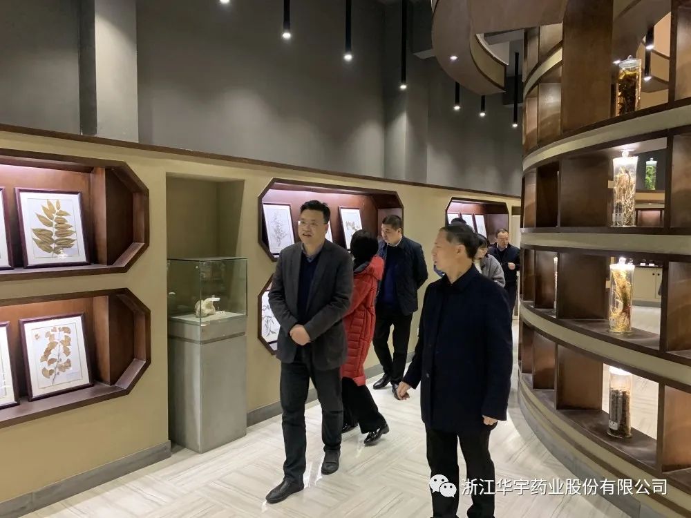 公司董事长萧若人带领丁副秘书长一行参观了我公司一楼大厅中药标本展示厅,逐一介绍“浙八味”展区、特色中药炮制品区、中药