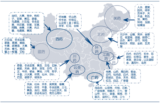我国十大道地药材产地分布
