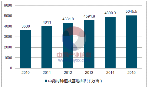 2010-2015年我国中药材种植及基地面积情况