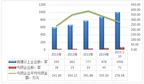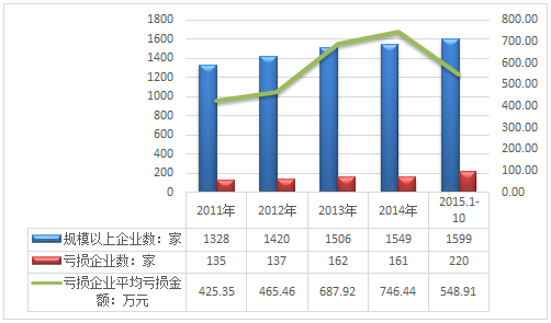 2011-2015年10月我国中成药生产行业企业亏损情况